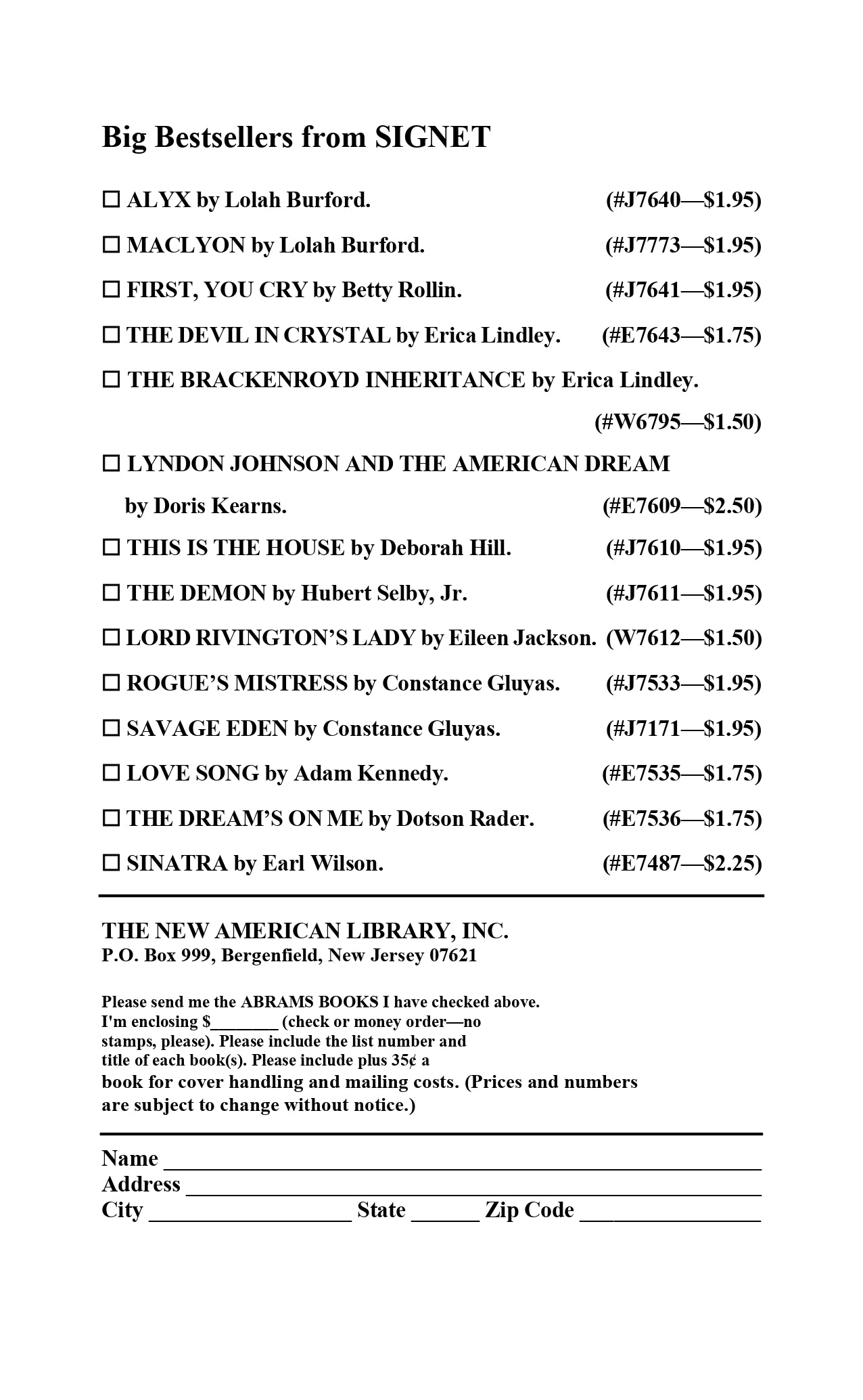 - Publisher: Signet Books, New York